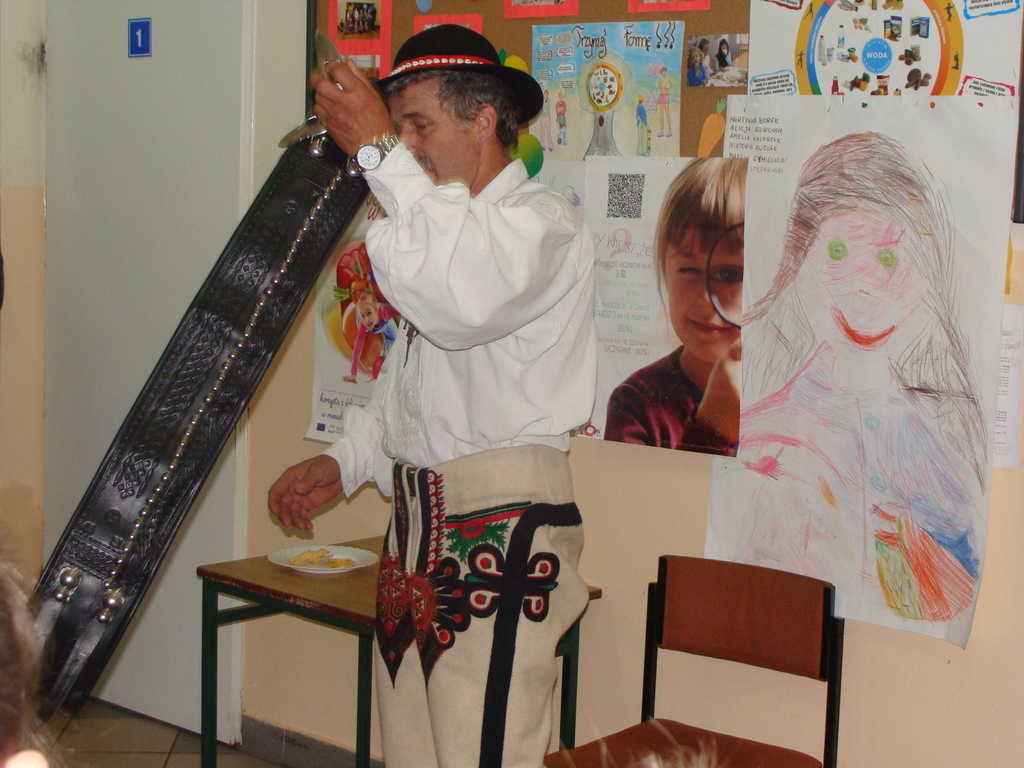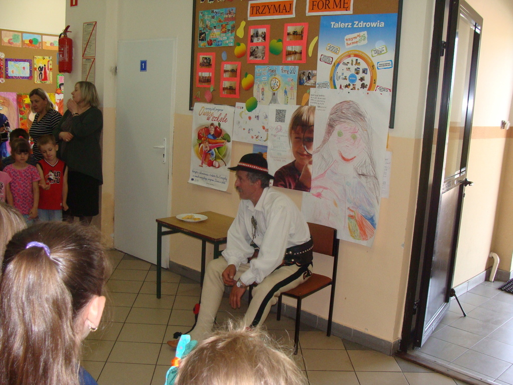 17 czerwca odbyło się spotkanie z góralem. Wszyscy uczniowie, nauczyciele, pracownicy zostałi poczęstowani oscypkiem. Nasz gość piękną gwarą opowiedział o zwyczajach góralskich, jak wygląda codzienne życie w górach. Uczniowi pytali jak wygląda szkoła. Szczególne zainteresowanie dzieci budził strój góralski. Było to niezwykłe spotkanie.