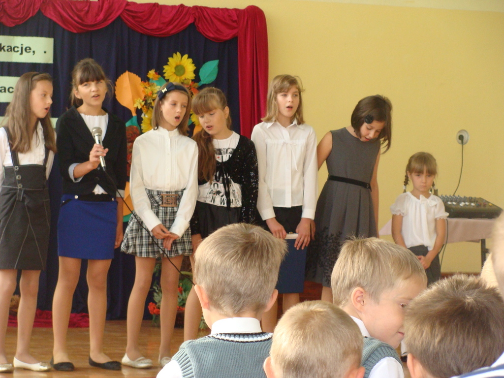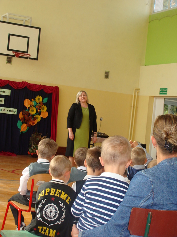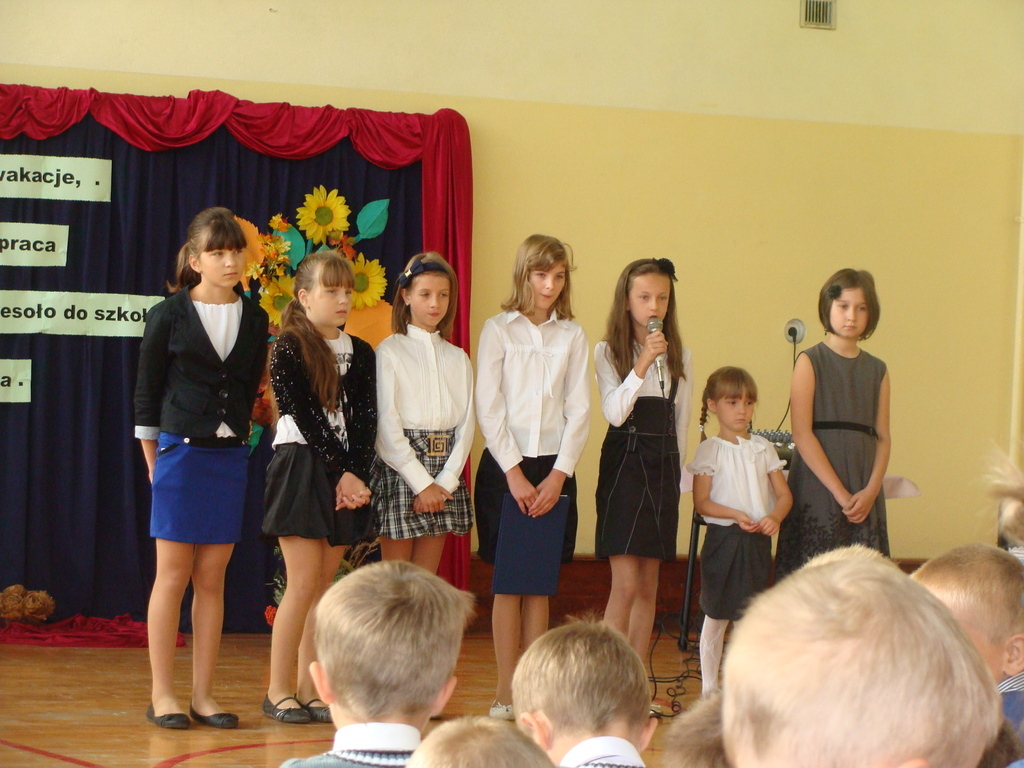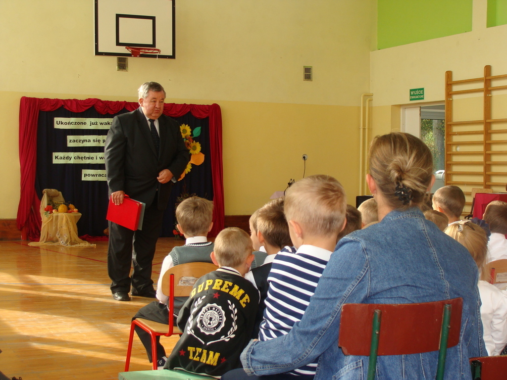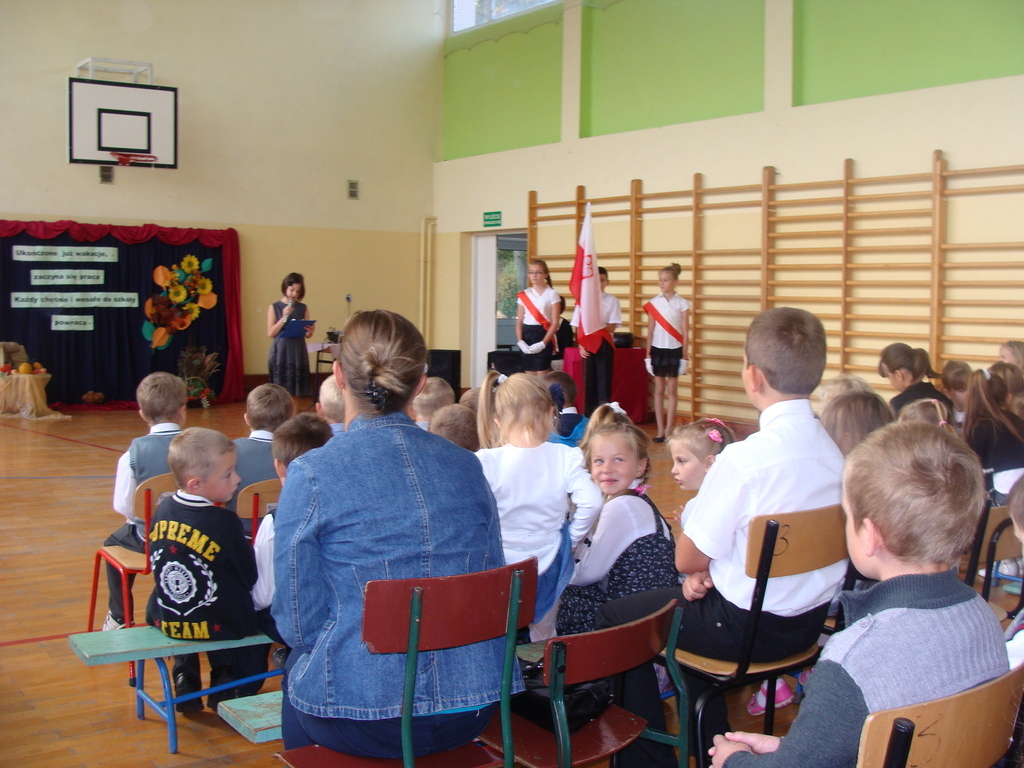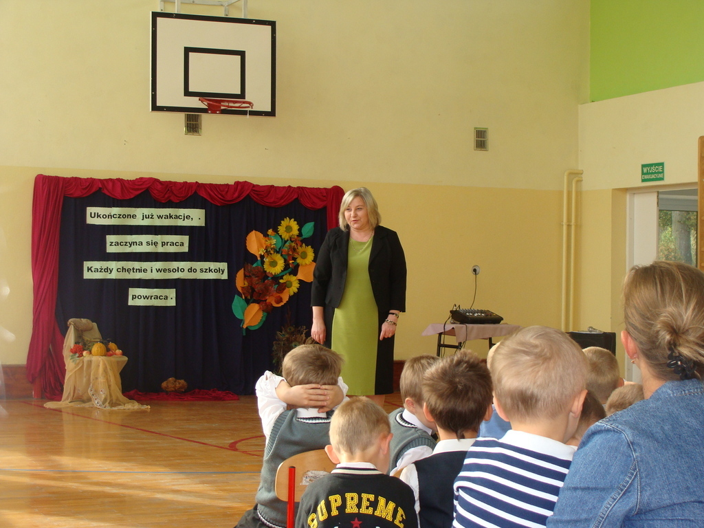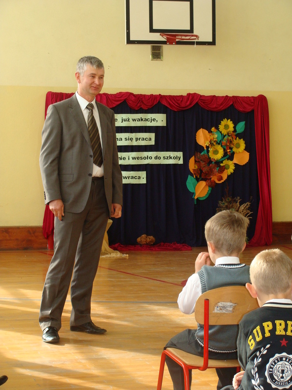 Uroczystość rozpoczęła się od wprowadzenia pocztu flagowego i odśpiewania hymnu, następnie uczniowie zaprezentowali przygotowaną część artystyczną pod kierunkiem pań: Jadwigi Koguc i Żaliny Świerszcz. Pani dyrektor Edyta Igras powitała zgromadzonych uczniów i wychowanków oddziału przzedszkolnego i punktu przedszkolnego, przedstawiła nauczycieli i wychowawców klas. Życzyła wszystkim powodzenia i wielu sukcesów. Po zakończeniu części oficjalnej, uczniowie wraz z rodzicami i nauczycielami przeszli do sal lekcyjnych, gdzie zostały omówione sprawy organizacyjne.
