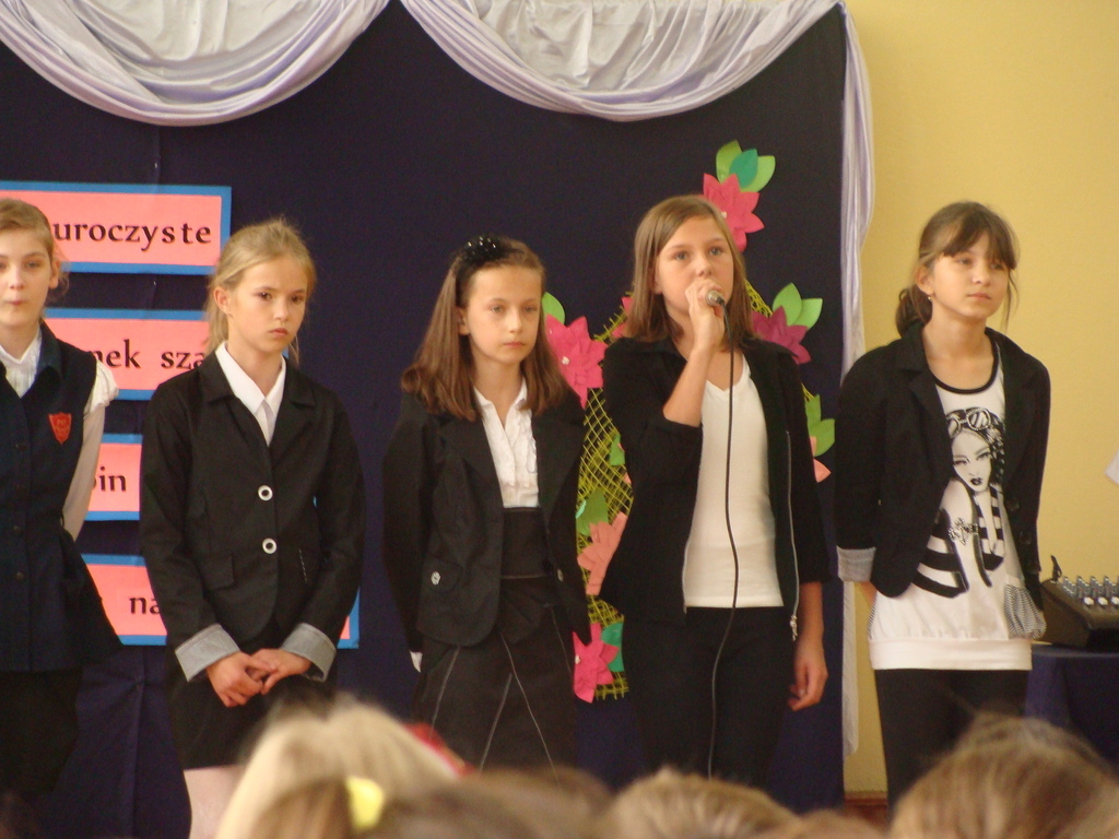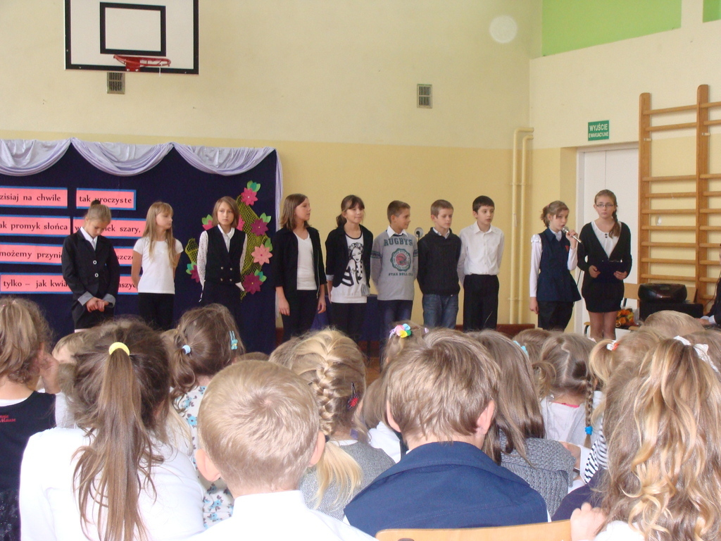 W dniu 14 października wszyscy nauczyciele, pracownicy i uczniowie uroczyście obchodzili Dzień Edukacji Narodowej zwany potocznie Dniem Nauczyciela. Oprawę artystyczną przygotowali uczniowie z klas IV-VI pod opieką pań: Małgorzaty Malinkiewicz-Szot, Jolanty Swiąder i Jadwigi Koguc.