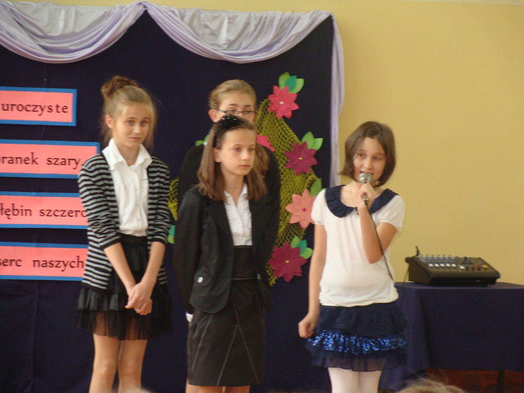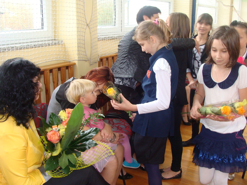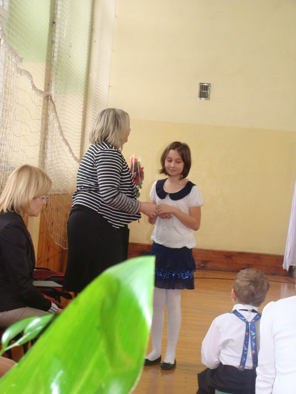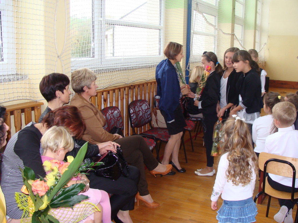 W dalszej części spotkania głos zabrała przewodnicząca Rady Rodziców Pani Małgorzata Hasiak, która złożyła gorące życzenia nauczycielom i pracownikom, a uczniowie wręczyli kwiaty.