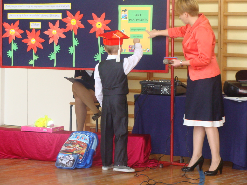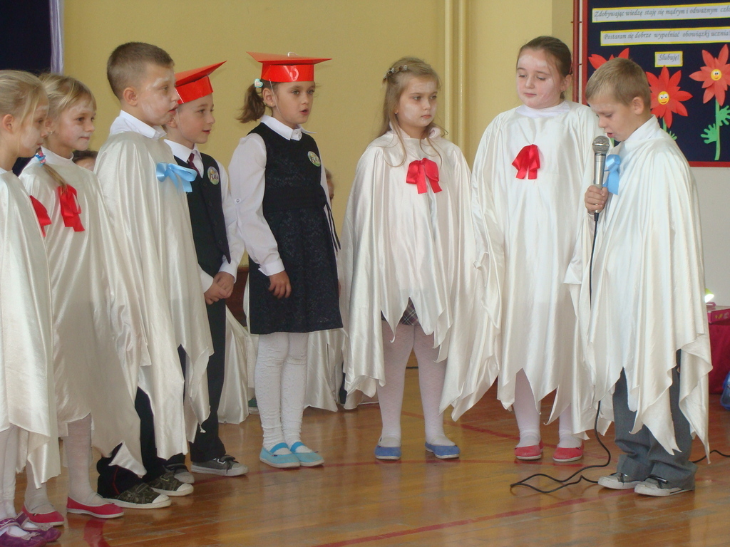 21 października odbyło się w naszej szkole uroczyste pasowanie na ucznia. W tym dniu ślubowanie złożyło dwoje uczniów naszej szkoły. Był to pierwszoklasista oraz drugoklasistka, która w tym roku szkolnym rozpoczęła naukę w naszej szkole. Pani dyrektor Edyta Igras symbolicznym ołówkiem pasowała bohaterów dnia na uczniów oraz wręczyła im niespodzianki. Podczas uroczystości wspólnie z nową koleżanką i nowym kolegą wsytępowali uczniowie klasy drugiej. Akademię uświetnił również występ trzecioklasistów, którzy w prezencie dla nowoprzyjętych do społeczności szkolnej uczniów zaprezentowali bajkę o Kopciuszku.