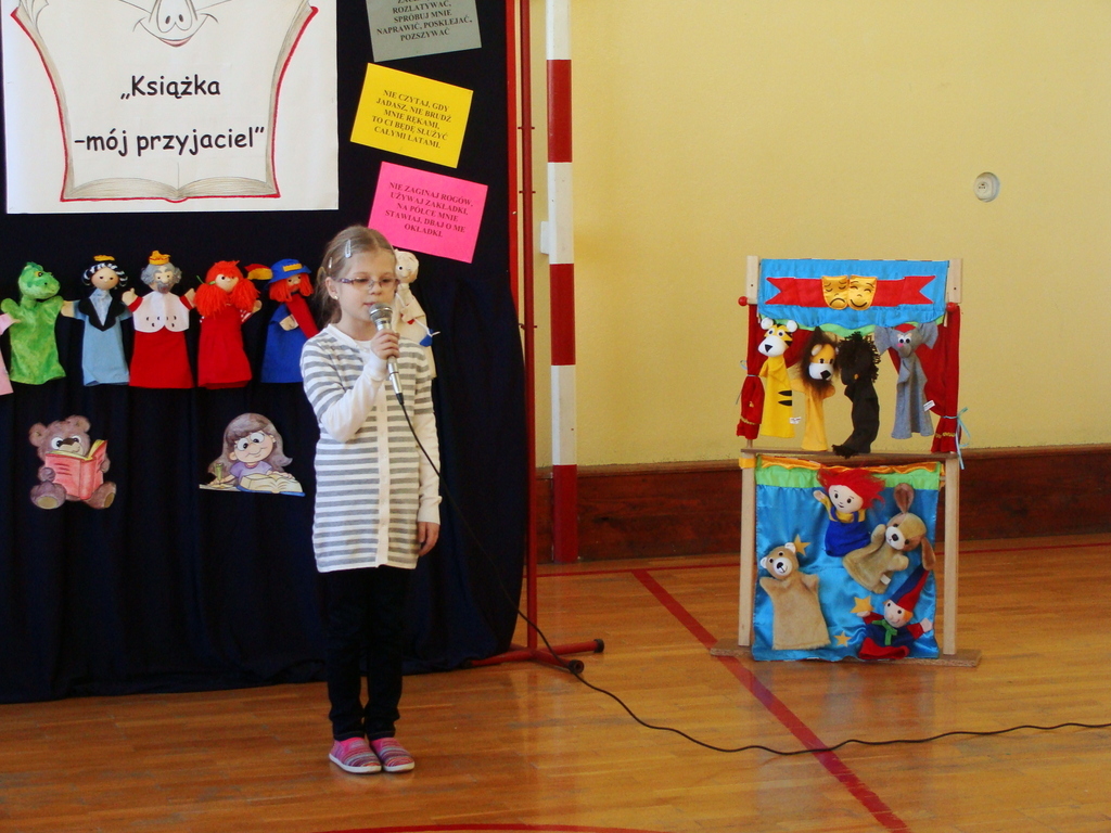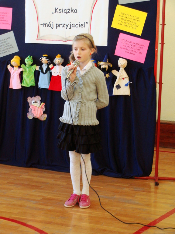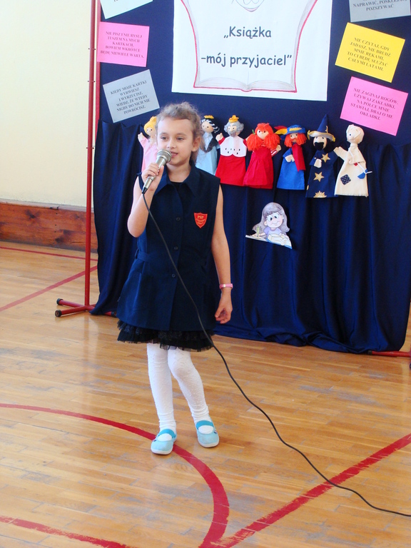 20 listopada 2013 r. odbył się w naszej szkole coroczny konkurs recytatorski dla klas 0-III oraz wychowanków punktu przedszkolnego. Uczniowie tym razem podjęli się recytacji wierszy o książce. Sam konkurs nosił tytuł "Książka - mój przyjaciel". Celem konkursu było m.in. kształtowanie umiejętności pięknej recytacji, zachęcanie do czytania, korzystania z księgozbioru biblioteki oraz przypomnienie zasad obcowania z książką.