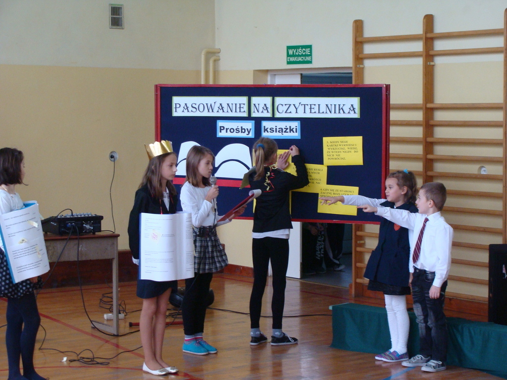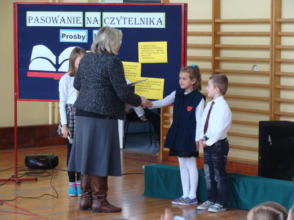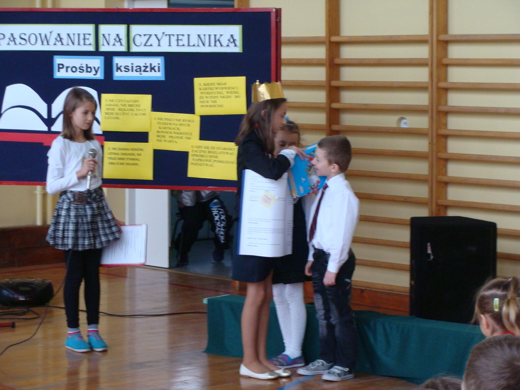 29 listopada dwoje uczniów zostało pasowanych na czytelników biblioteki szkolnej. Uroczystość została przygotowana przez uczniów klasy czwartej pod kierunkiem nauczyciela bibliotekarza - panią Mariolę Zielonkę. Uczniowie złożyli uroczystą przysięgę. Otrzymali również pamiątkowe dyplomy i książki.