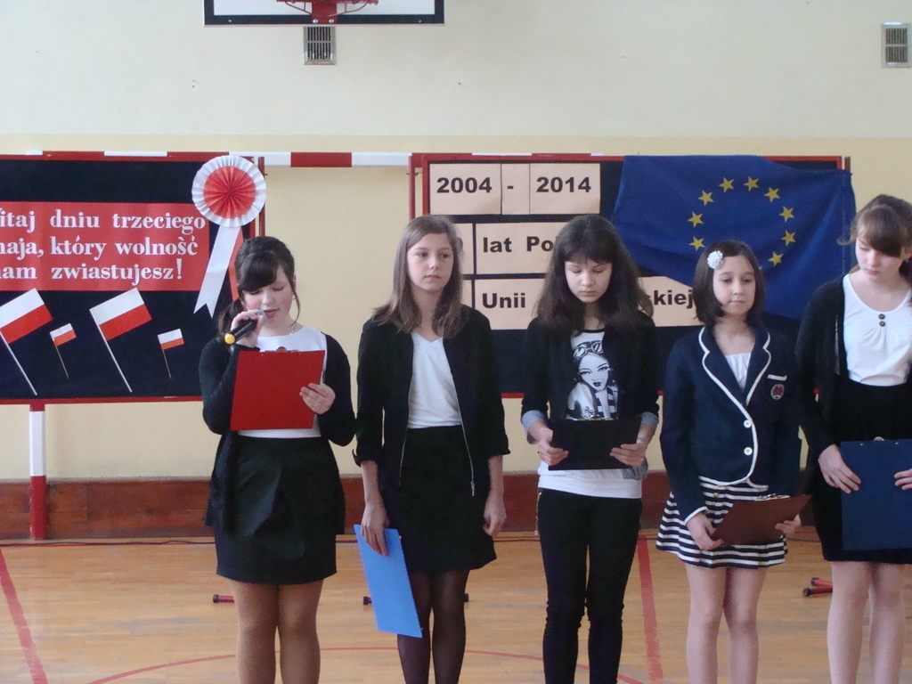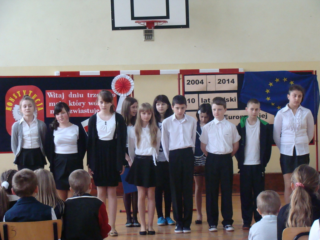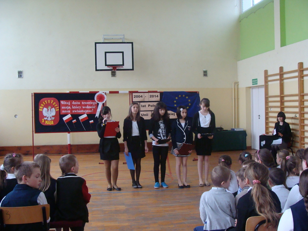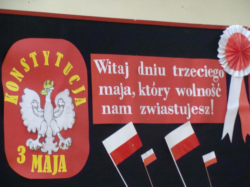 29 kwietnia na sali gimnastycznej zebrała się społeczność szkolna, aby uczcić 223. rocznicę uchwalenia Konstytucji 3 Maja. Uczniowie przypomnieli wszystkim zebranym jak doszło do tego wielkiego wydarzenia. Wspomnieli również o tym, że 1 maja minie 10 lat od przystąpienia Polski do Unii Europejskiej, ten dzien jest również Świętem Pracy, a 2 maja obchodzone jest Święto Flagi Rzeczpospolitej Polskiej.